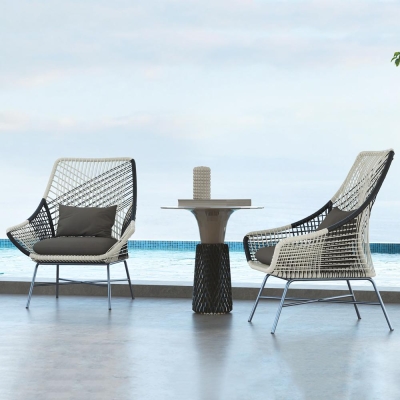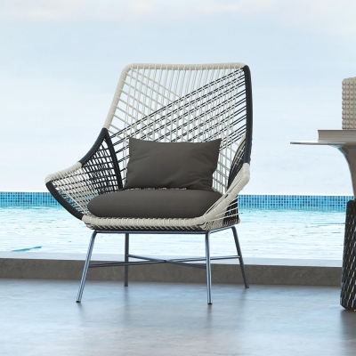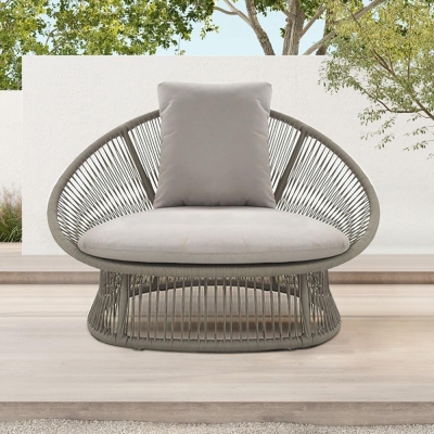 Patio Rattan Barrel Chair with White Cushion Pillow