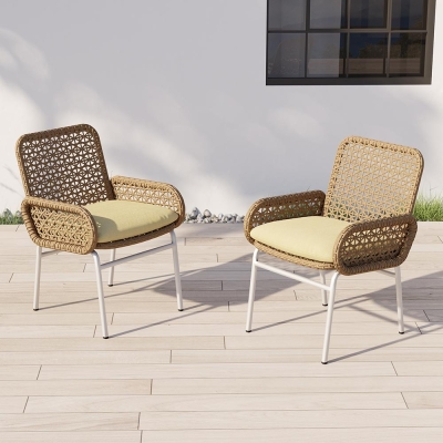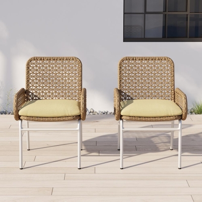 Outdoor PE Rattan Patio Chair Armchair with Cushion Pillow(Set of 2)