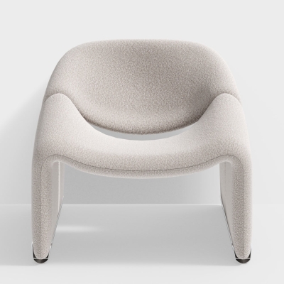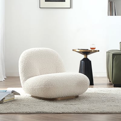 Modern White Boucle Accent Chair Lounge & Chair