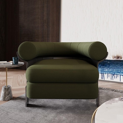 Modern Green Boucle Upholstered Accent Chair with Round Back