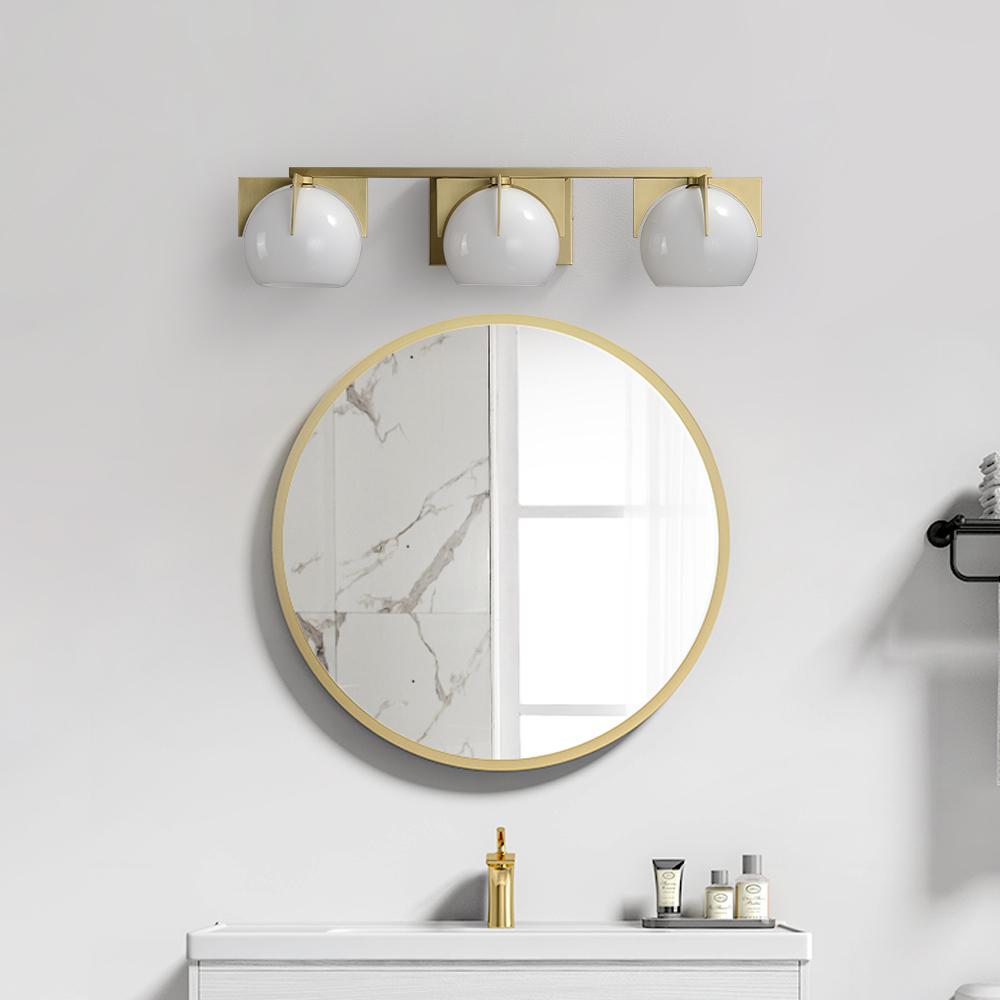 3-Light White Globe Bathroom Wall Light Metal Vanity Wall Sconce in Gold